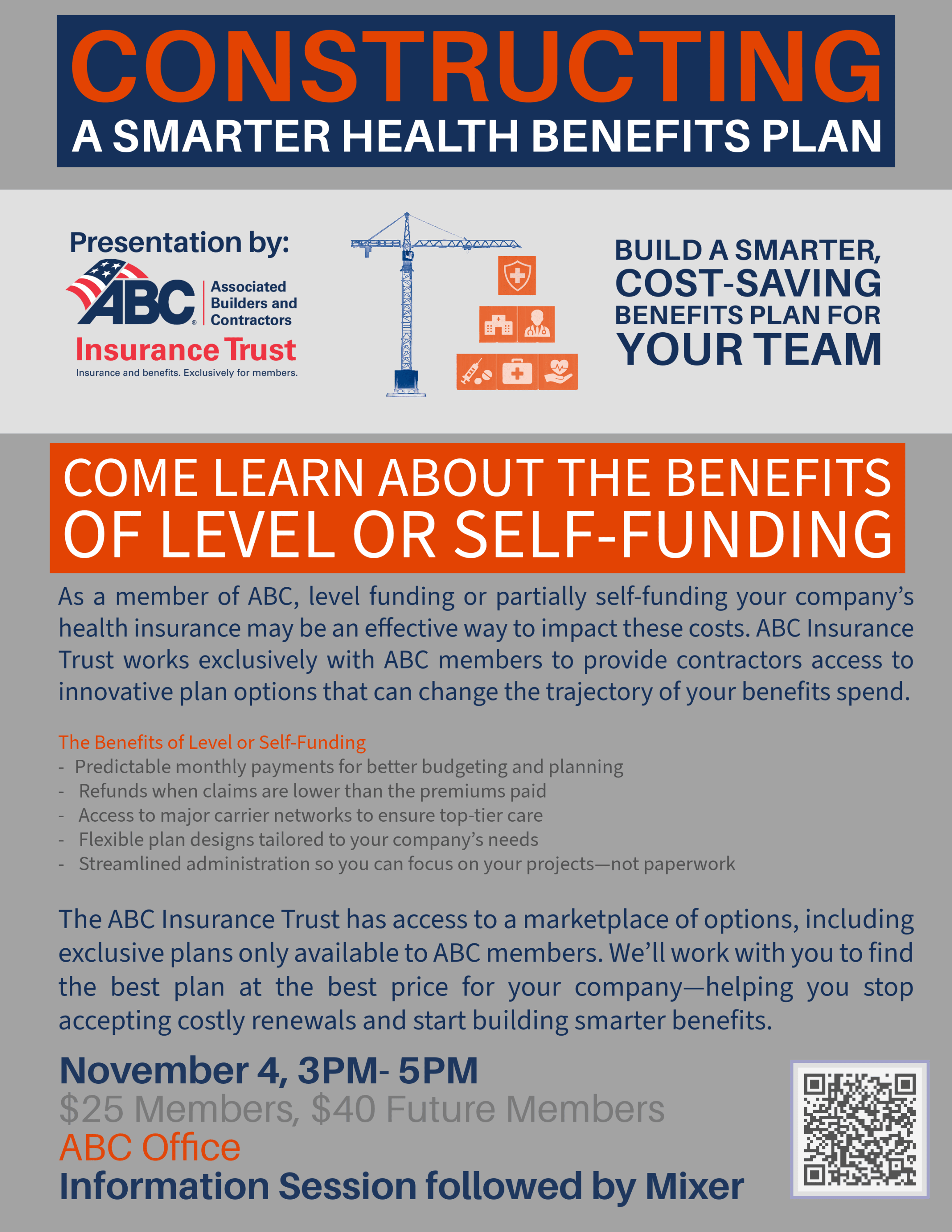 As a member of ABC, level funding or partially self-funding your company’s health insurance may be an effective way to impact these costs. ABC Insurance Trust works exclusively with ABC members to provide contractors access to innovative plan options that can change the trajectory of your benefits spend.