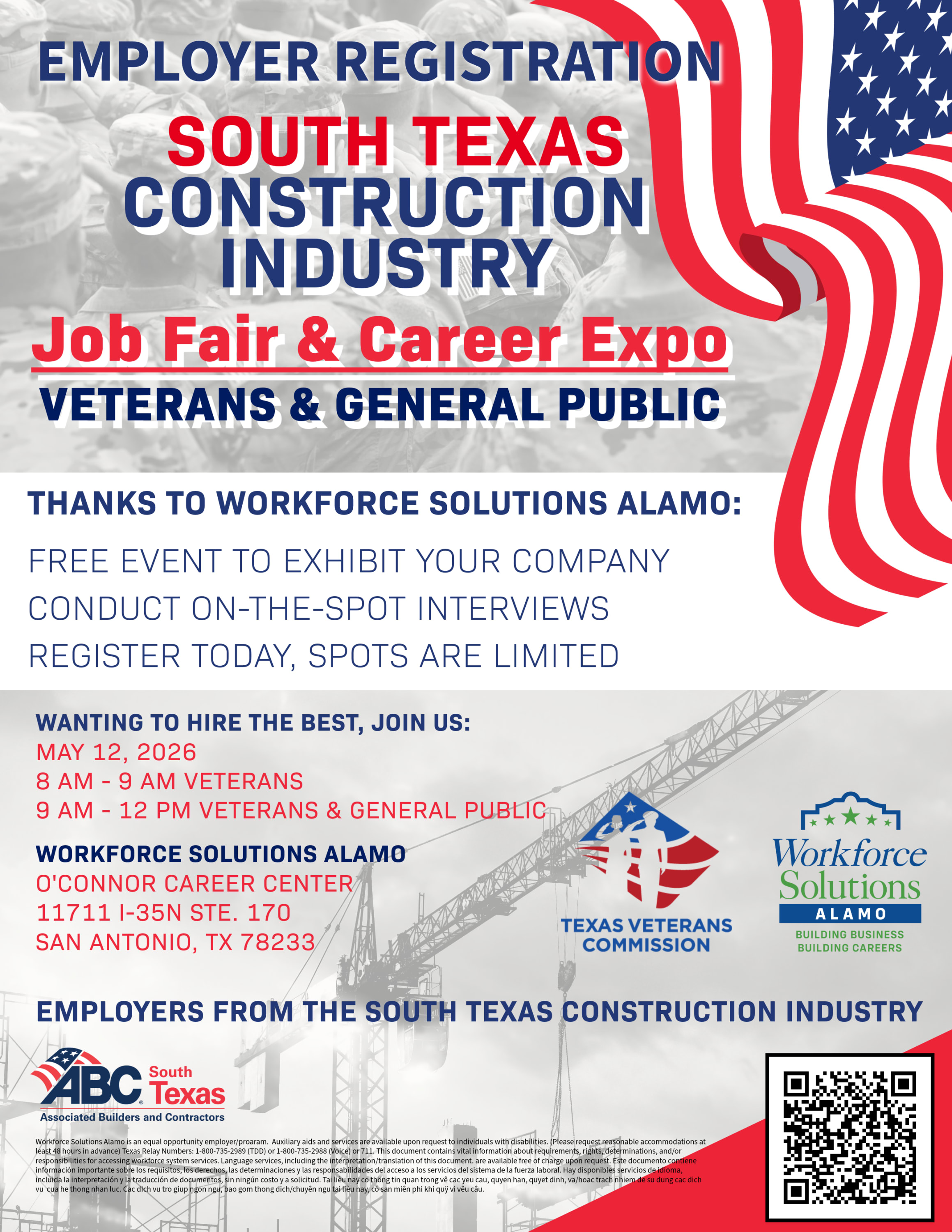 Interact with the public and veterans to educate them on the construction industry. This is a great way to find candidates and conduct interviews on the spot.
